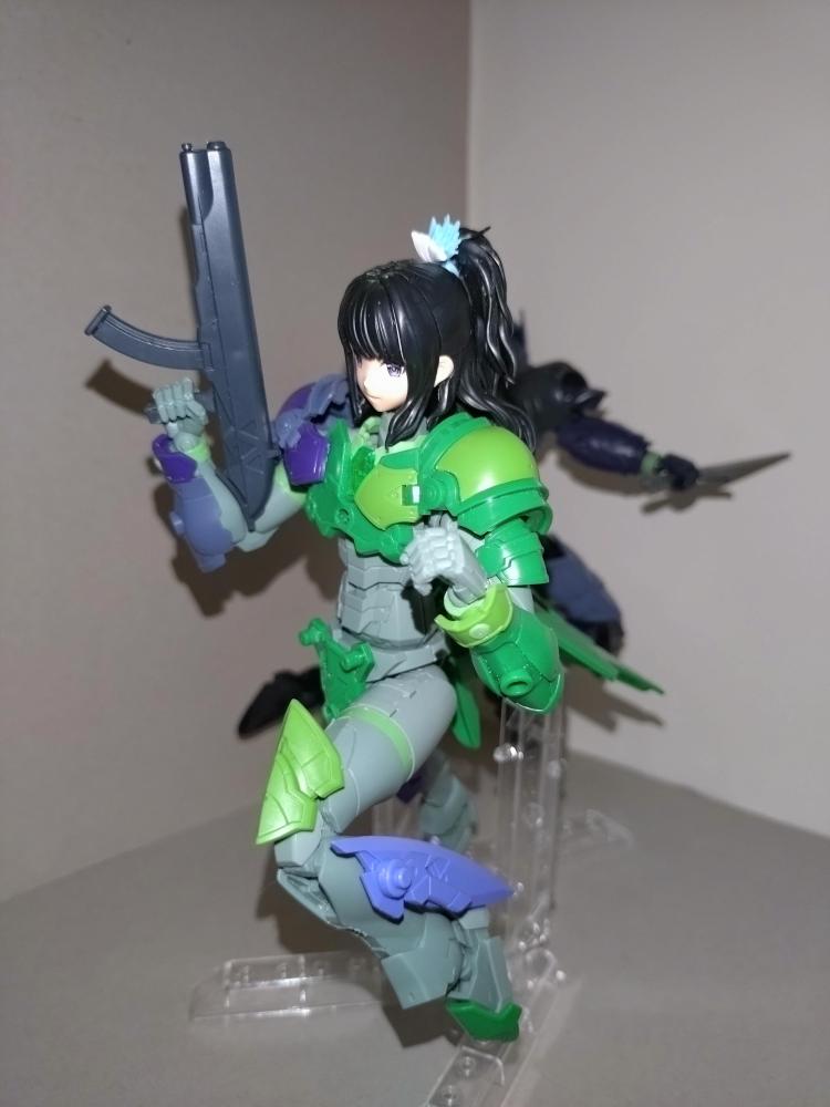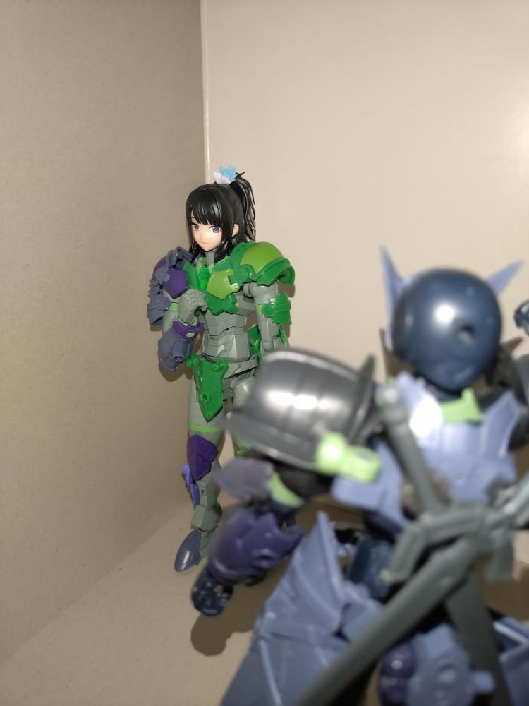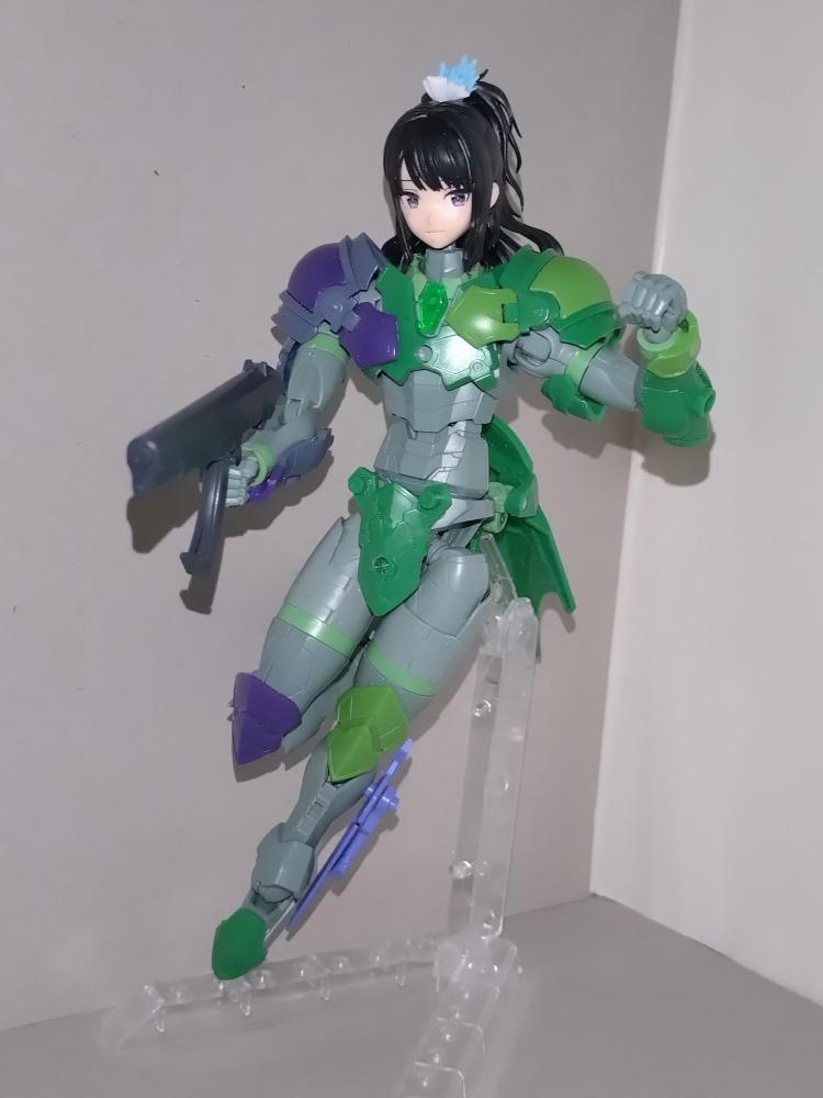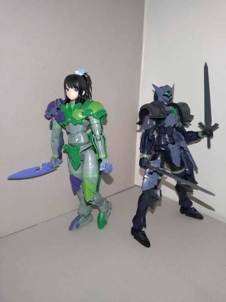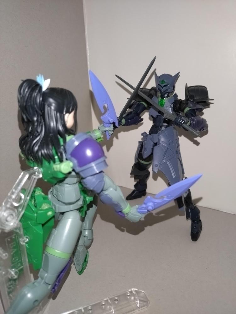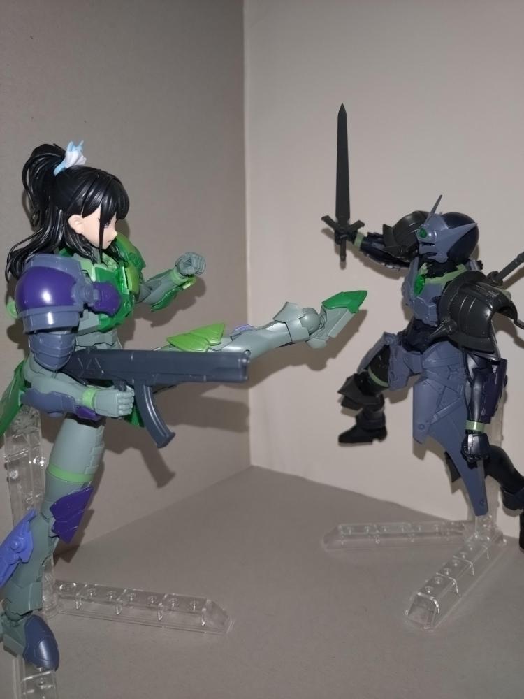 実はローザンソードマン(アーリータイプ)の手甲パーツは撮影前に接着しました。個体にもよるのでしょうが、衝撃に弱いのかハズれやすい嫌いがあり、また、手甲パーツをはずす必要があるタイプの武器を持たせることもないと判断し、接着にふみきったものです。