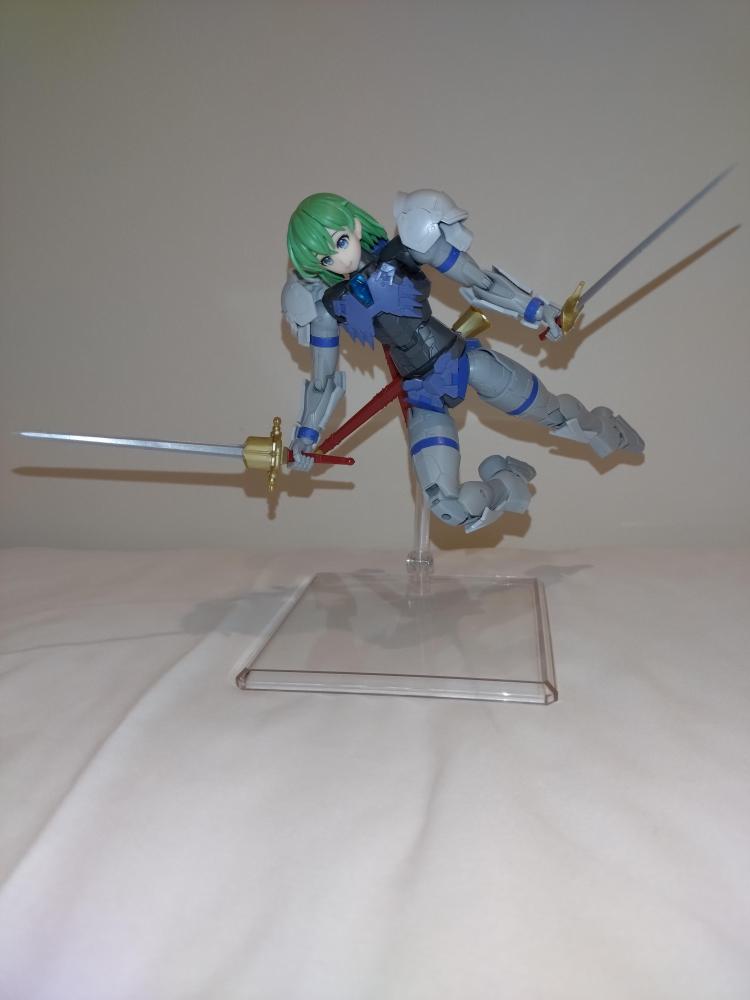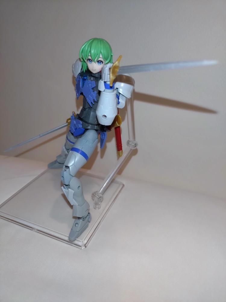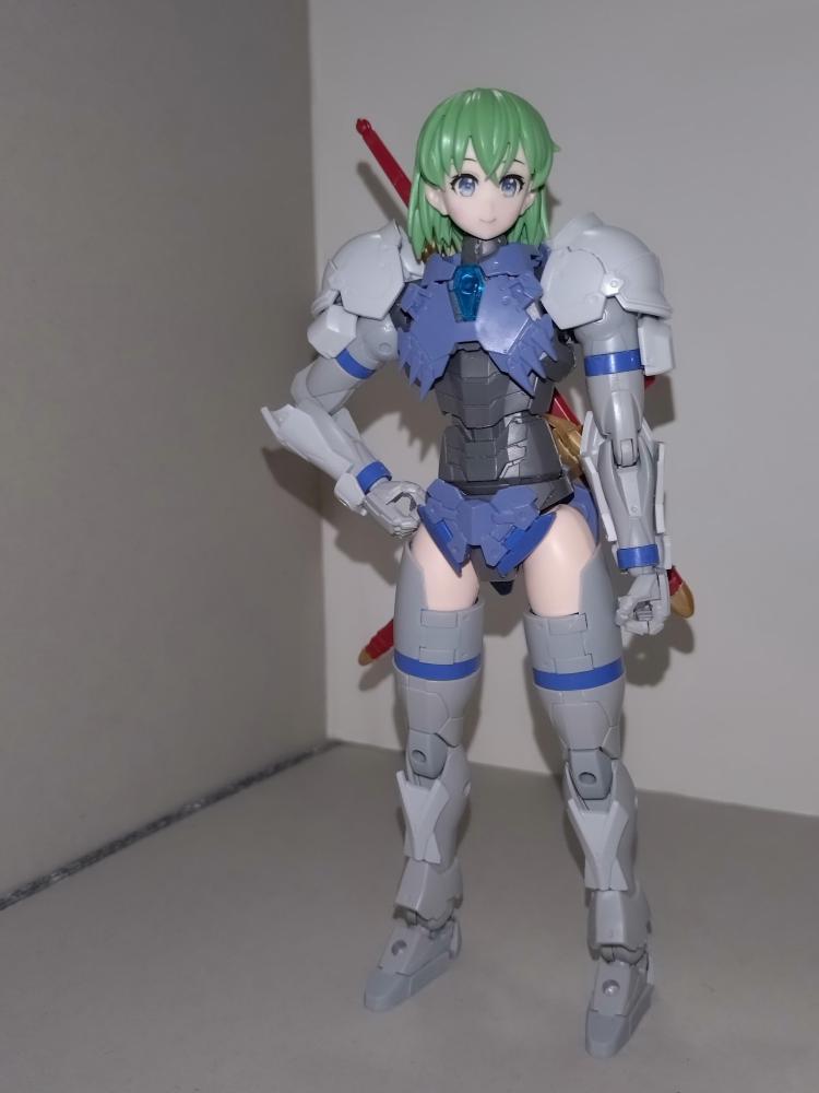 この投稿よりも少し前、「30MSつく」にて、オプションパーツセット16・フェアリーコスチューム+ナイト腕+プリースト脚の組み合わせ(https://30ms-tsukuro.com/work/no0001907/)で公開したこちらの娘ですが、前述の通り、晴れて「ジゼル」という名前になりました。